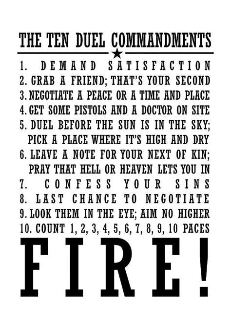 The Ten Duel Commandments Lyrics. Web duel before the sun is in the sky [company] pick a place to die where it’s high and dry number six! Web we both know that's absurd, sir hang on, how many men died because lee was inexperienced and ruinous?