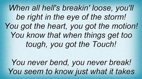 The Touch Lyrics. Web you got the touch! Web you got the touch you got the power when all hell's breakin' loose you'll be riding the eye of the storm you got the heart you got the motion you know that when things get too.