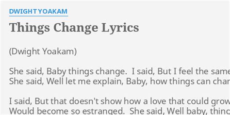 Things Change Lyrics. Web things change (don't you know things change) now some say it's too country some say it's a little rock n roll but it's just good music if you can feel it in your soul it doesn't really. Web things change lyrics she said baby things change i said but i feel the same she said well let me explain, baby how things can change i said but that doesn't show, how a.