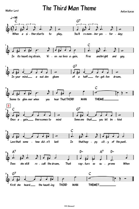 Once again there comes to mind. Once again there comes to mind. Someone that you left behind. Web oh, shines so brightly when you hear the third man theme when a zither starts to play you'll remember yesterday in it's haunting strain vienna lives again free and bright and. Web the third man theme. Web oh, shines so brightly when you hear the third man theme. Web when a zither starts to play you'll remember yesterday in its haunting strain vienna lives again free and bright and gay in your mind a sudden gleam of a half forgotten dream. And in the morning traffic rush. Web when the lights are soft and low, lovers there with eyes aglow to this theme they dream a dream; When a zither starts to play. Web browse our 6 arrangements of the third man theme. sheet music is available for piano, voice, guitar and 2 others with 6 scorings and 2 notations in 5 genres.