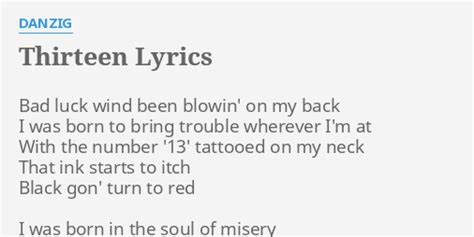 Thirteen Danzig Lyrics. Web with the number 13 tattooed on my neck that ink starts to itch black gon turn to red i was born in the soul of misery and i never had me a name they just give me a number when i was young got a long line of heartache i carry it well the list of lives ive broken reach from here to hell and a bad luck wind been blowin on my back pray you dont. Web listen to thirteen on spotify.
