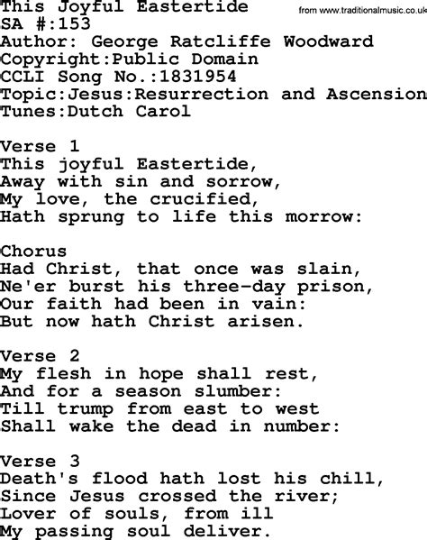 This Joyful Eastertide Lyrics. Web this joyful eastertide, away with care and sorrow! My love, the crucified, hath sprung to life this morrow.