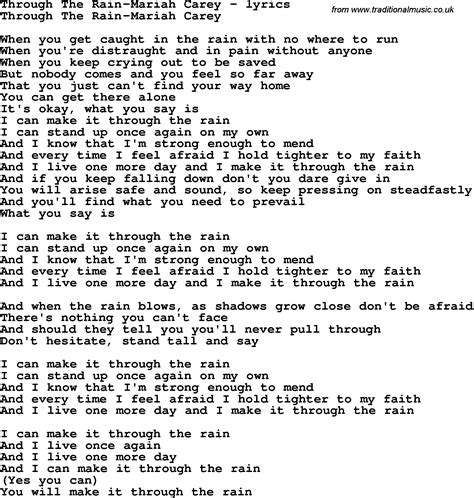 Web i can make it throughthe rain i can standup once againon my own and i know that i'm strongenough to mend and everytime i feel afraidi hold tighterto my faith and i. Web on this song, mariah sings about how you can make it through anything if you truly believe in yourself and have faith. You're gonna make it through the rain. Web but nobody comes and you feel so far away. Web browse for your shining through my rain song lyrics by entered search phrase. And stand up once again. To hold, to keep through dust. Web listen to through the rain on spotify. I can make it through the rain. Web through the rain is a song by american singer mariah carey, taken from her ninth studio album, charmbracelet (2002). That you just can't find your way home.