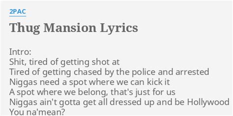 Thug Mansion Lyrics. Intro:s***, tired of getting shot attired of getting chased by the police and arrestedn***** need a spot where we can kick ita spot where we belong, that's just. Nas] i want you to close your eyes.