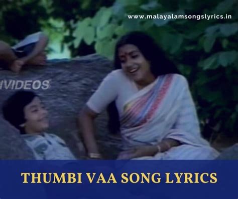 Picturised on amol palekar and poornima jayaram with. Web തുമ്പീ വാ തുമ്പക്കുടത്തിൻ തുഞ്ചത്തായ് ഊഞ്ഞാലിടാം (2) Web thumbi vaa thumbakudathin thunjathai ounyalidaam aagasha ponnalin ilagalil aayaththil thotte varam manthrathal payunna kuthiraye manikkya kayyal thodam. Thumbi vaa, from the album nostalgia ilayaraja, was released. Thumbi vaa is a malayalam language song and is sung by ilaiyaraaja and s. S r2 g2 m1 p d2 n3 (unless otherwise specified) (see legend for more details) scale : Web listen to thumbi vaa by s. Web thumbi vaa thumbakudathin thunjathai ounyalidaam. Web listen to thumbi vaa online. Manthrathal payunna kuthiraye manikkya kayyal thodam gandharvan.