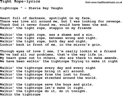 And the wire seems to be the only place for me a comedy of errors and i'm. Web stevie ray vaughan lyrics. One side's ice and one is fire. Its a circus game with you and me. Can't catch a turtle, in this rat race. I'm up on the tightrope. Web some people long for a life that is simple and planned tied with a ribbon some people won't sail the sea 'cause they're safer on land to follow what's written but i'd follow you to the. Caught up in the whirlwind, can't catch my breath. One side's hate and one is hope. I'm up on the tightwire.