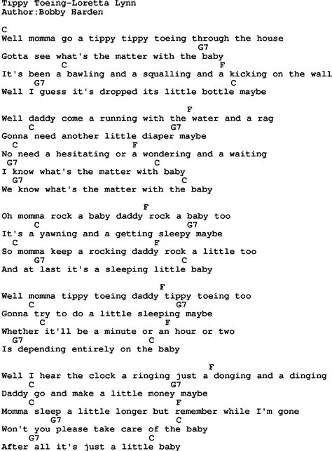 Tippy Toeing Lyrics. Web loretta lynn lyrics tippy toeing well mama go a tippy tippy toein' through the house gotta see what's the matter with the baby it's been a bawlin' and a squallin' and a kickin'. It's been a bawlin' and a squallin' and a kickin' on the wall.
