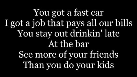 Tracy Chapman Lyrics. To make your everyday life seem less mundane. Tracy chapman (1988) talkin' bout a revolution fast car across the lines behind the wall.