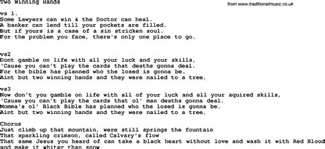 Two Winning Hands Lyrics. Web this is from a video i shot from the front row of a hinson concert in may of 1987 But if yours is the case.