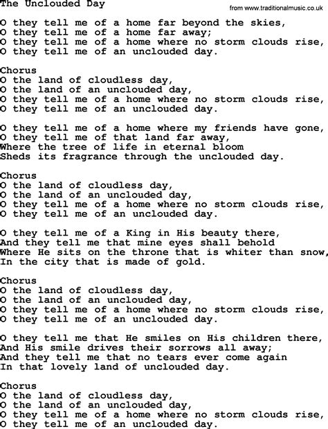 Hymns and Songs about Heaven The Unclouded Day lyrics, and PDF
