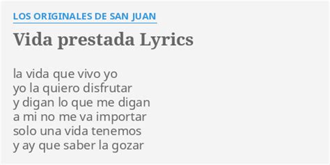 Vida Prestada Lyrics. Y digan lo que me digan. Web vida prestada lyrics la vida que vivo yo yo la quiero disfrutar y digan lo que me digan a mi no me va importar solo una vida tenemos y ay que saber la gozar la vida que tengo yo.