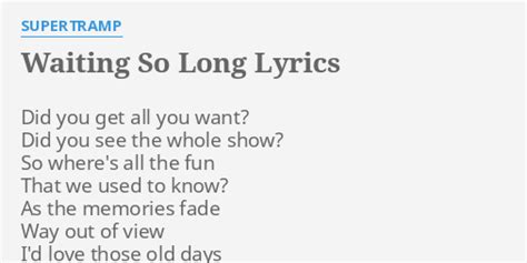 Waiting So Long Supertramp Lyrics. Did you get all you want? Web i've been waiting so long i'm not feeling so strong did you say what you mean?
