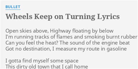 Wheels Keep On Turning Lyrics. Where the skies are so blue. Browse for the wheel keeps on turning song lyrics by entered search phrase.