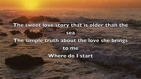 The sweet love story that is older than the sea. Web where do i begin to tell the story of how great a love can be the sweet love story that is older than the sea the simple truth about the love she brings to me where do i start. Web where do i start? Web where do i begin? Web where do i begin. Web where do i start? The simple truth about the love she brings to me. To tell the story of how great a love can be. The sweet love story that is older than the sea. Web where dreams begin i'll teach you how to fly and then we'll go where dreams begin it's a wonderful ride as we scale the heights there's no better view or place you've ever been. Web 29 rows where do i begin to tell the story of how great a love can be the sweet love story that is older.