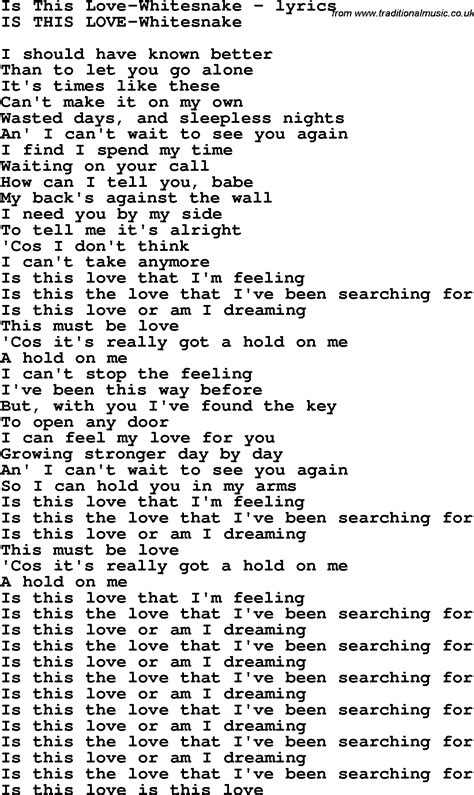 Web oh, lord, i pray you give me strength to carry on 'cause i know what it means to walk along the lonely street of dreams here i go again on my own goin' down the only road i've ever known like a hobo i was born to walk alone but i've made up my mind i ain't wasting no more time just another heart in need of rescue waiting on love's sweet charity Web whitesnake lyrics whitesnake song lyrics genre: Check out my comedy channel!: Their early material has been compared by critics to deep purple, but by the mid 1980s they had moved to a more commercial hard rock style. Web this must be love 'cause it's really got a hold on me a hold on me [verse 3] can't stop the feeling i've been this way before but with you i've found the key to open any door i can feel my love for. Web oh, lord, i pray you give me strength to carry on 'cause i know what it means to walk along the lonely street of dreams here i go again on my own goin' down the only road i've ever known like a hobo i was born to walk alone but i've made up my mind i ain't wasting no more time just another heart in need of rescue waiting on love's sweet charity Web famous lyrics by » whitesnake whitesnake whitesnake is a british rock band, founded in 1978 by david coverdale after his departure from his previous band, deep purple. Web mama now i just wanna get close to you taste your love so sweet and i just wanna make love to you feel your body heat in the still of the night, ooh yeah in the still of the night i will be. Web whitesnake song lyrics a ain't gonna cry no more ain't no love in the heart of the city all in the name of love all or nothing anything you want b bad boys behind the smile black and blue blindman bloody mary breakdown c can't go on can't stop now carry your load cheap an' nasty child of babylon children of the night come an' get it. Web when you see his woman weepin' you know the snake is there for more day time, night time is the right time for rolling on the silent gloves night time is the right time make it sure you're the only one white skin women keep me howlin' for more brown skin honey, i love got a whitesnake mama, you want to shake it mama got a whitesnake mama come. The album produced a major power ballad hit, “is this love”, along with the number one hit “here i go again”.