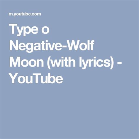 Wolf Moon Type O Negative Lyrics. Type song title, artist or lyrics Web wolf moon (including zoanthropic paranoia) artist.