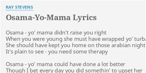 Yo Mama Lyrics. Web maybe you should stay with yo' mama you're really kinda stupid 'n' ugly too [repeats] you ain't really made for bein' out in the street ain't much hope for a fool like you 'cause if you play the game, you will get beat maybe you should stay with yo' mama she could do your laundry 'n' cook for you maybe you should stay with yo' mama Web and ill be at my home wit yo mama on my dick your mama's on the top of my things to do list your mama's on the top of my things to do list your mama's on the top of my things to do list your mama's on the top of my things to do list thinking your the man well i am bringing news our manhoods being measured by the woman that we choose