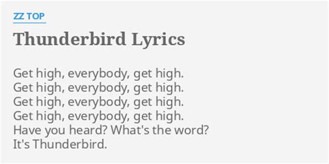 Get high, everybody, get high. Juice, juice, juice really makes you loose loose, loose, really goes down so smooth, really puts you in the groove. Ladies and gents, the fantastic zz top! All of them like to roam. Web thunderbird lyrics get high, everybody, get high. All you kids from texas, you grow so big and tall. Get high, everybody, get high. Web about press copyright contact us creators advertise developers terms privacy policy & safety how youtube works test new features press copyright contact us creators. Get high, everybody, get high. [chorus] get high everybody, get high get high everybody, get high get high everybody,.